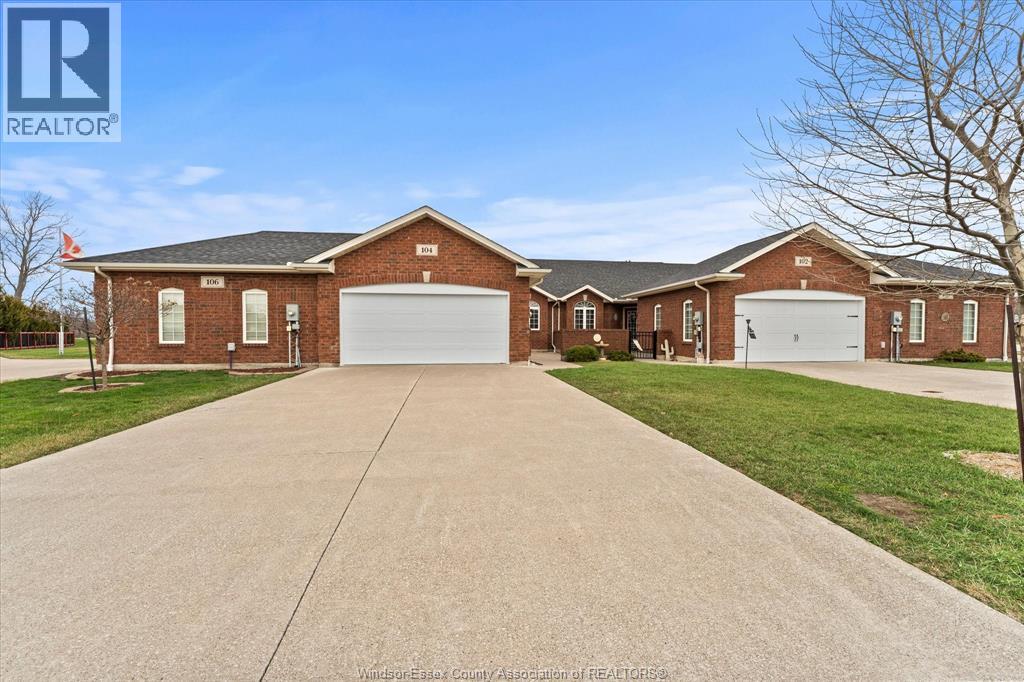 ""Location, Location, Location! Ranch townhome in the heart of Amherstburg with walking distance to shopping, Navy Yard Park and the downtown core. 2 bedroom 2 bath ranch all on one floor with main floor laundry and large finished cement drive and attached 2 car garage. Backs onto no rear neighbor's. Inviting front courtyard for entrance and rear covered patio. No condo or HOA fees. Updated hardwood flooring throughout, roof shingles replaced (2020 approx.). Full unfinished basement. The Seller reserves the right to accept or decline any offer. Schedule B to accompany all offers."" (id:4555)